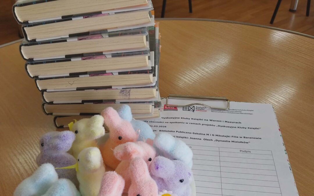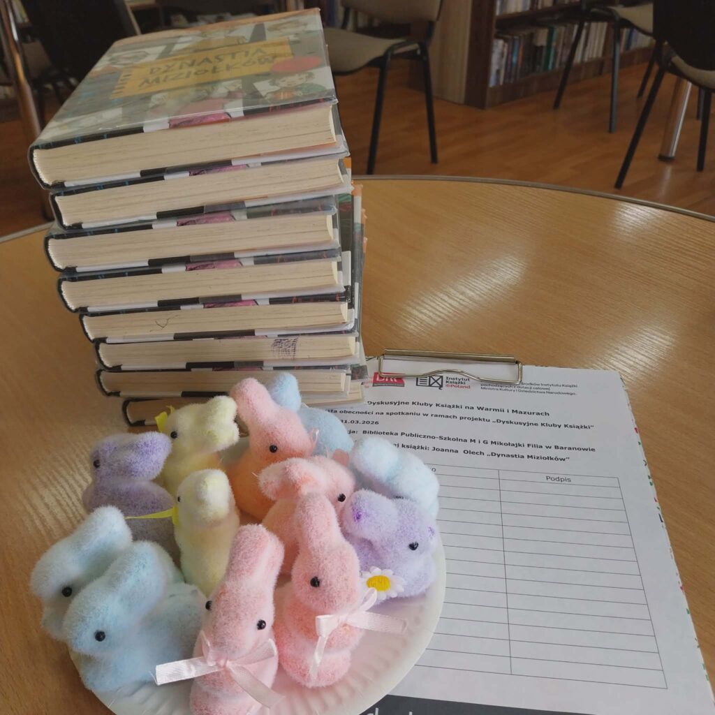 31 marca 2026 r., w atmosferze zbliżających się Świąt Wielkanocnych, 💛📖🐤odbyło się spotkanie Dyskusyjnego Klubu Książki w Filii w Baranowie. Uczestnicy omawiali książkę Joanny Olech „Dynastia Miziołków”. 💛📖🐤Rozmowa dotyczyła humorystycznej formy dziennika, relacji rodzinnych oraz ponadczasowego charakteru opisanych sytuacji. Klubowicze podkreślali lekkość stylu autorki oraz atrakcyjność książki dla młodszych czytelników.🐤