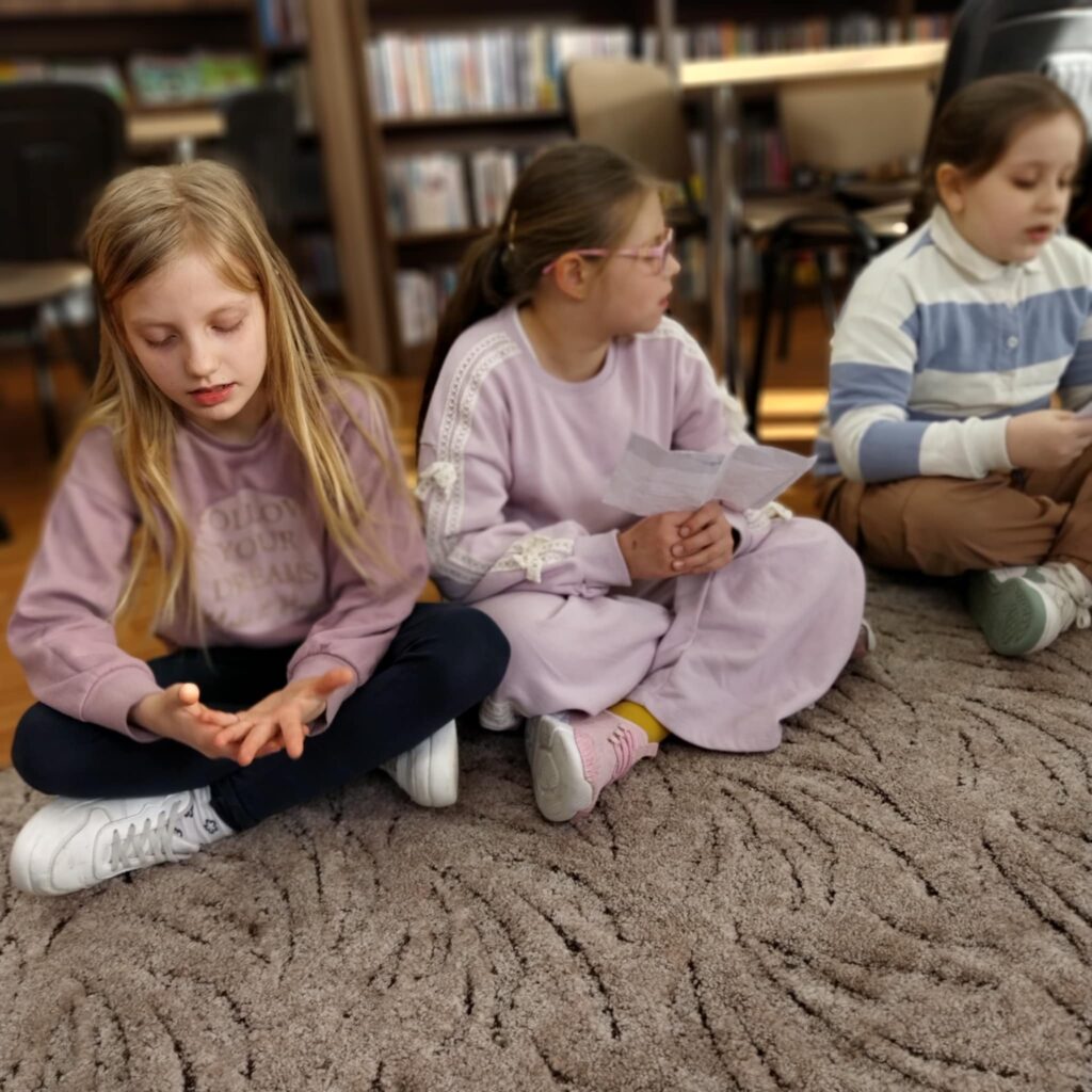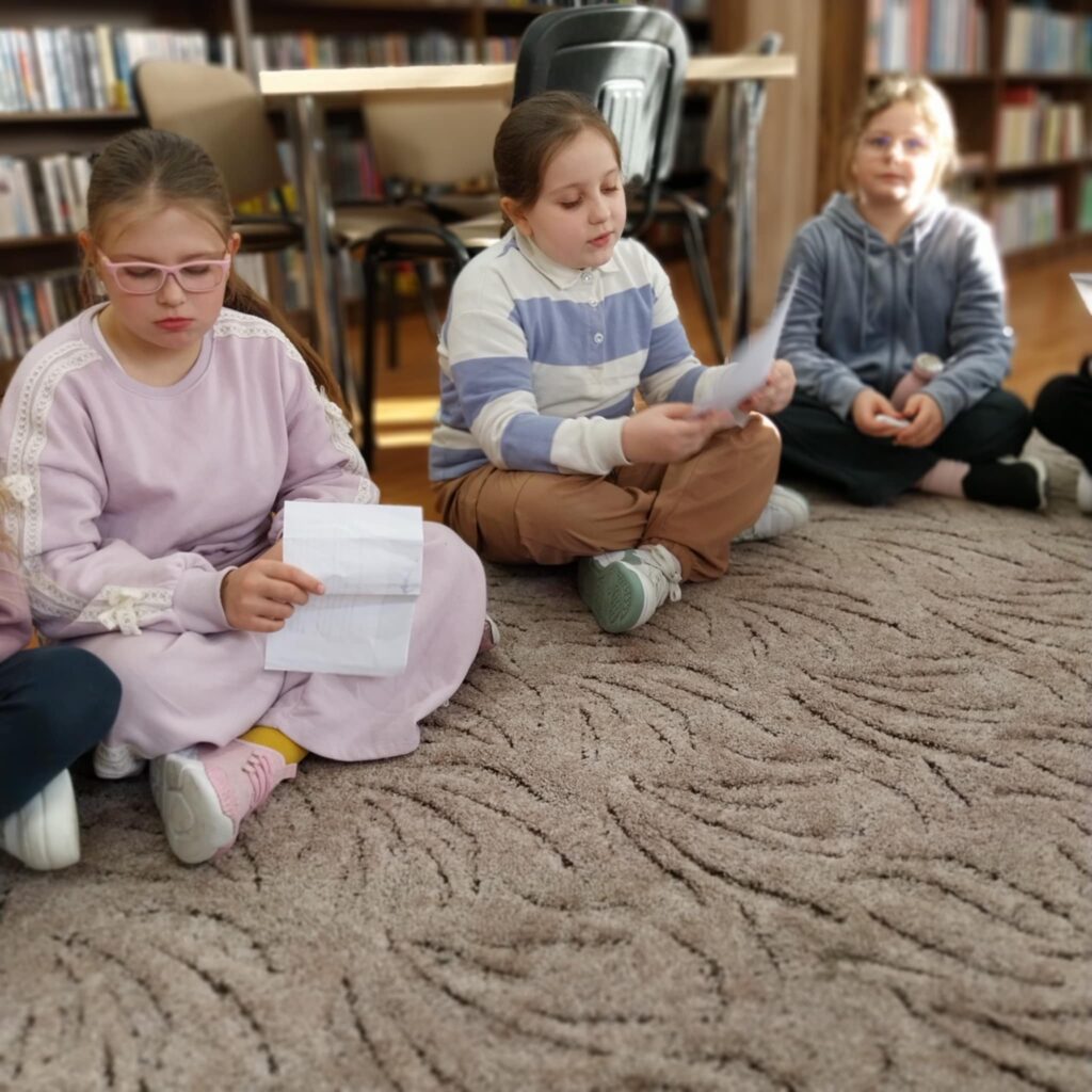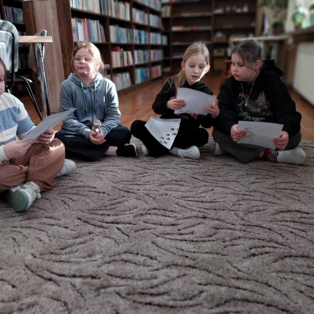 Centralnym punktem wydarzenia była prezentacja przygotowana przez uczniów. Dzieci przedstawiły opowiadanie „Czarny kot” autorstwa Renaty Piątkowskiej, pochodzące z książki „Szczęście śpi na lewym boku”. Uczniowie z dużym zaangażowaniem wcielili się w role, pokazując, że potrafią nie tylko czytać, ale także interpretować tekst literacki i przekazywać emocje bohaterów.