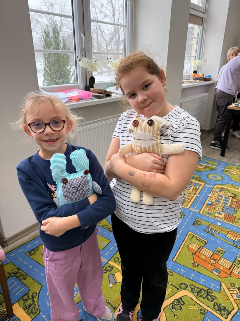 Podczas pracy panowała twórcza atmosfera. Każda zabawka była inna i niepowtarzalna Powstały kolorowe miękkie przytulanki – zwierzątka. Uczestnicy z dumą prezentowali swoje prace, ucząc się jednocześnie wiary we własne możliwości.