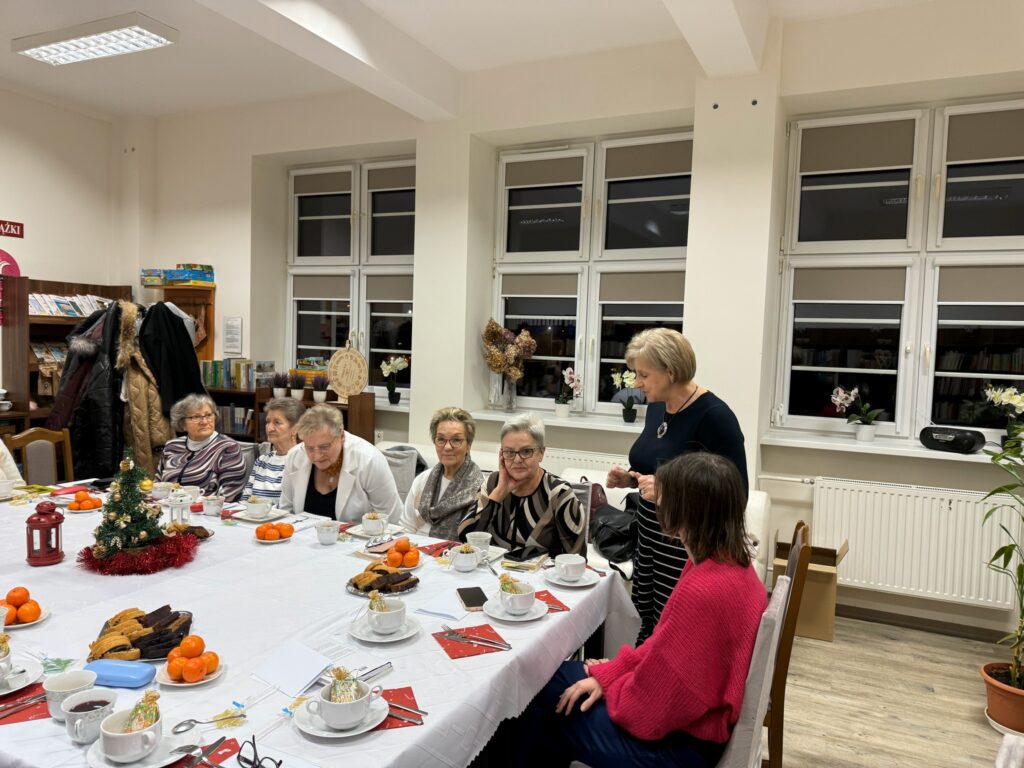 Przekroczywszy progi biblioteki uczestnicy spotkania zasiedli przy pięknie udekorowanym, wigilijnym stole,