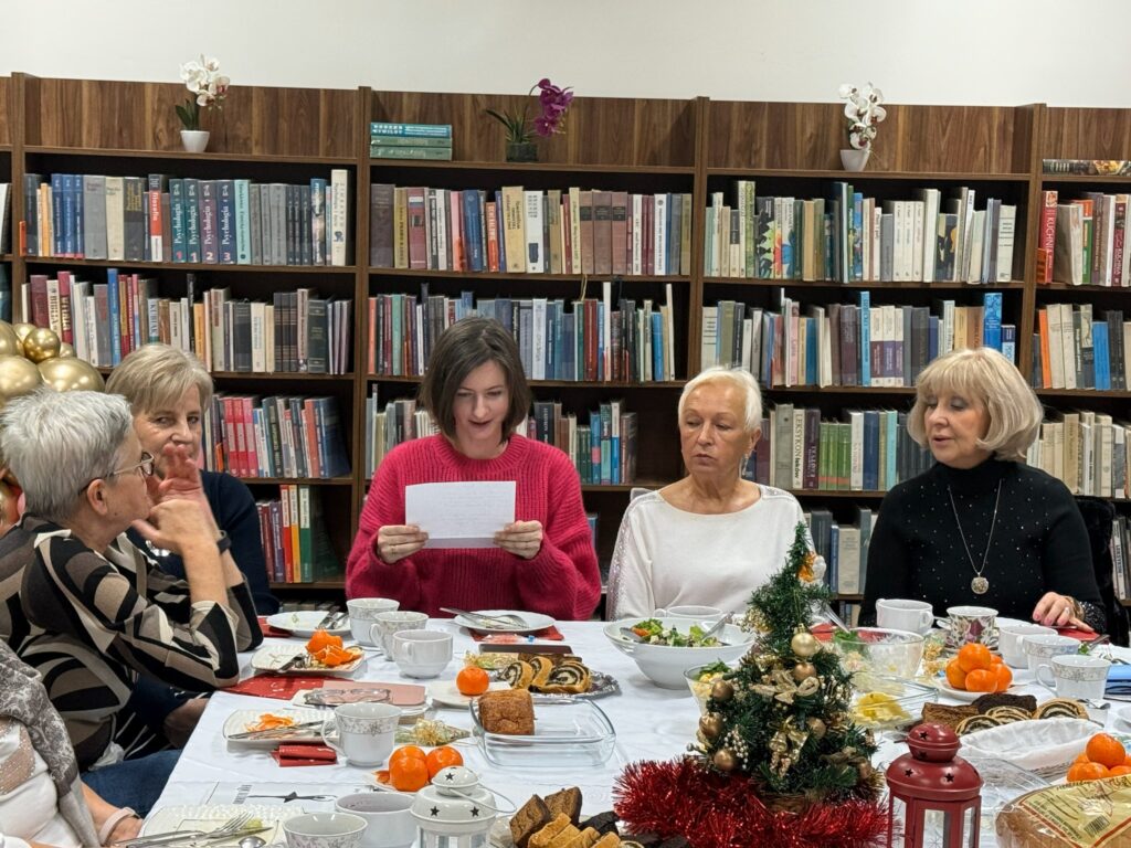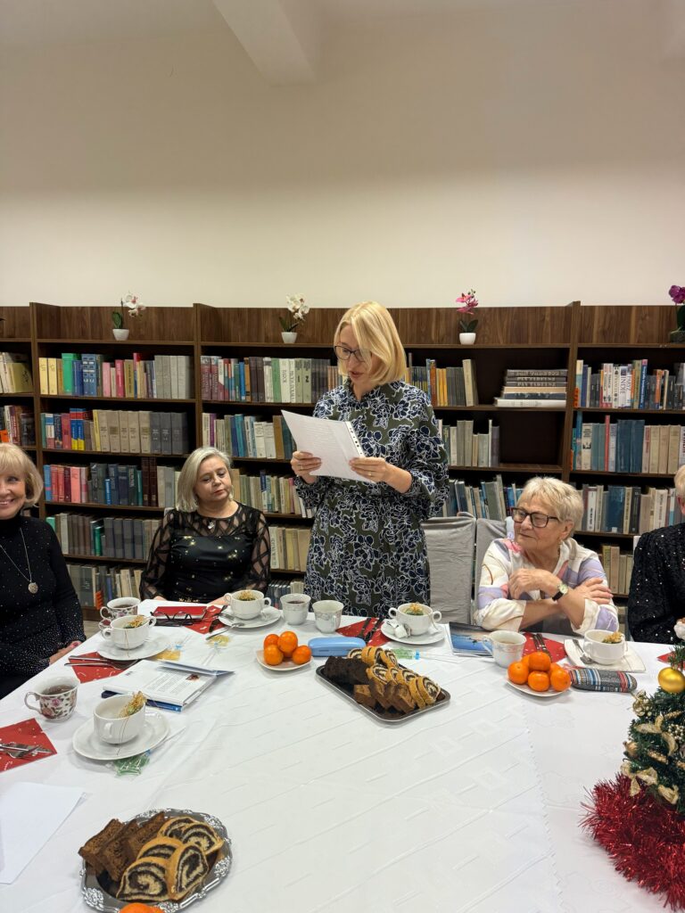 Wieczór rozpoczęła pani Renata Gawlińska, kierownik Biblioteki, tradycyjnym powitaniem i złożeniem wszystkim uczestnikom świątecznych i noworocznych życzeń.